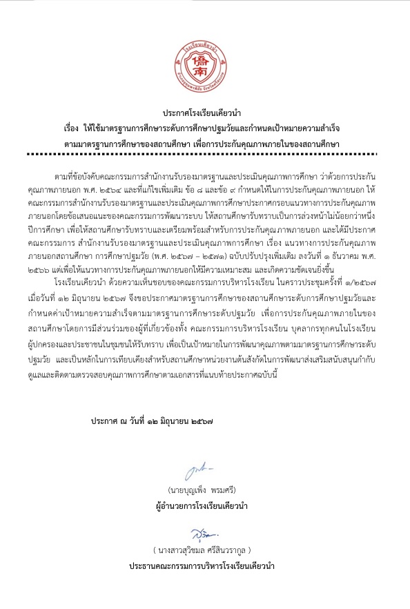 เอกสารประกอบการประกันคุณภาพภายนอก โรงเรียนเคียวนำ