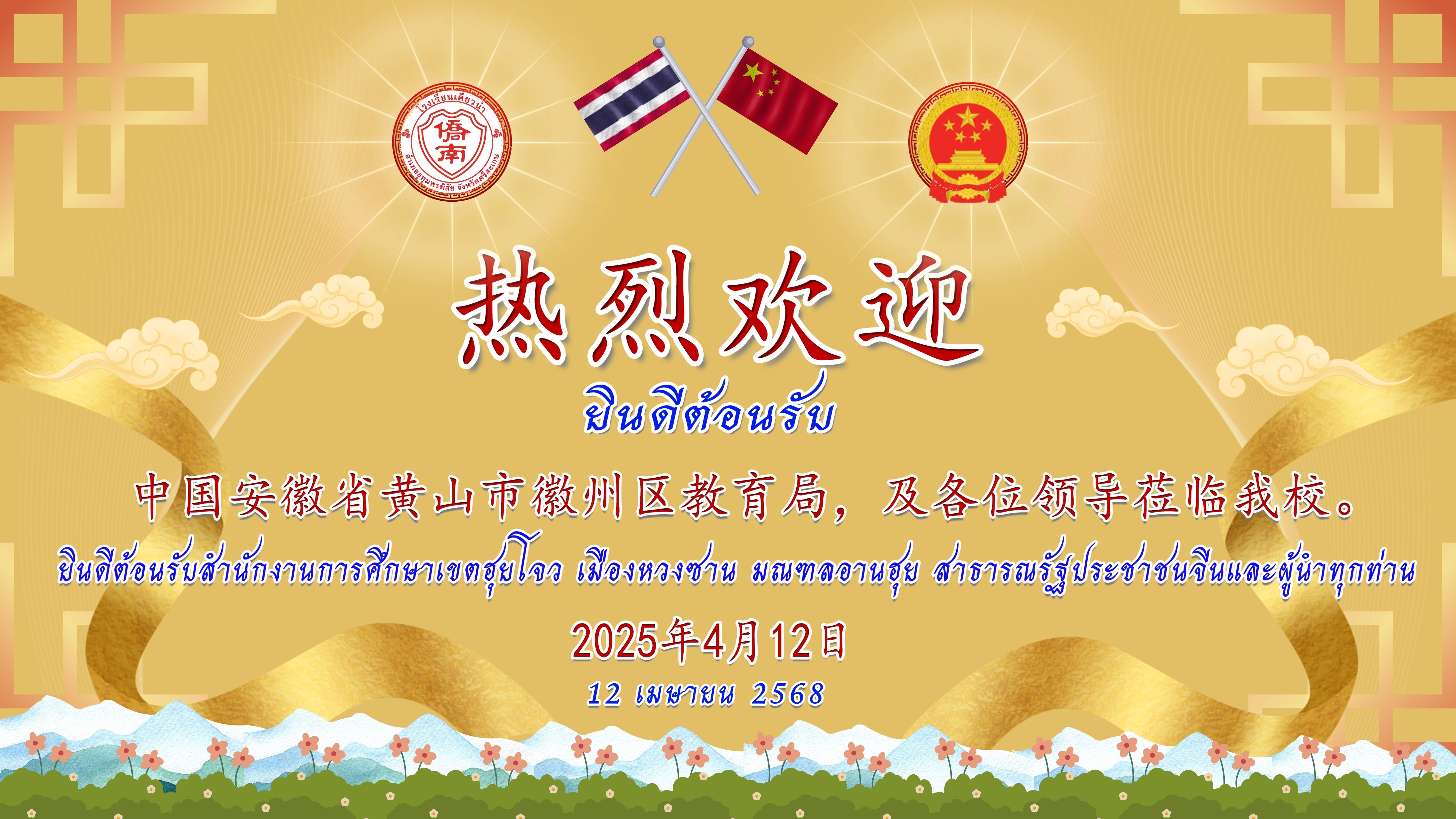 ยินดีต้อนรับสำนักงานการศึกษาเขตฮุยโจว เมืองหวงซาน มณฑลอานฮุย ประเทศจีนและผู้นำทุกท่านที่ได้มาเยี่ยมชมโรงเรียนเคียวนำ จังหวัดศรีสะเกษ ประเทศไทย