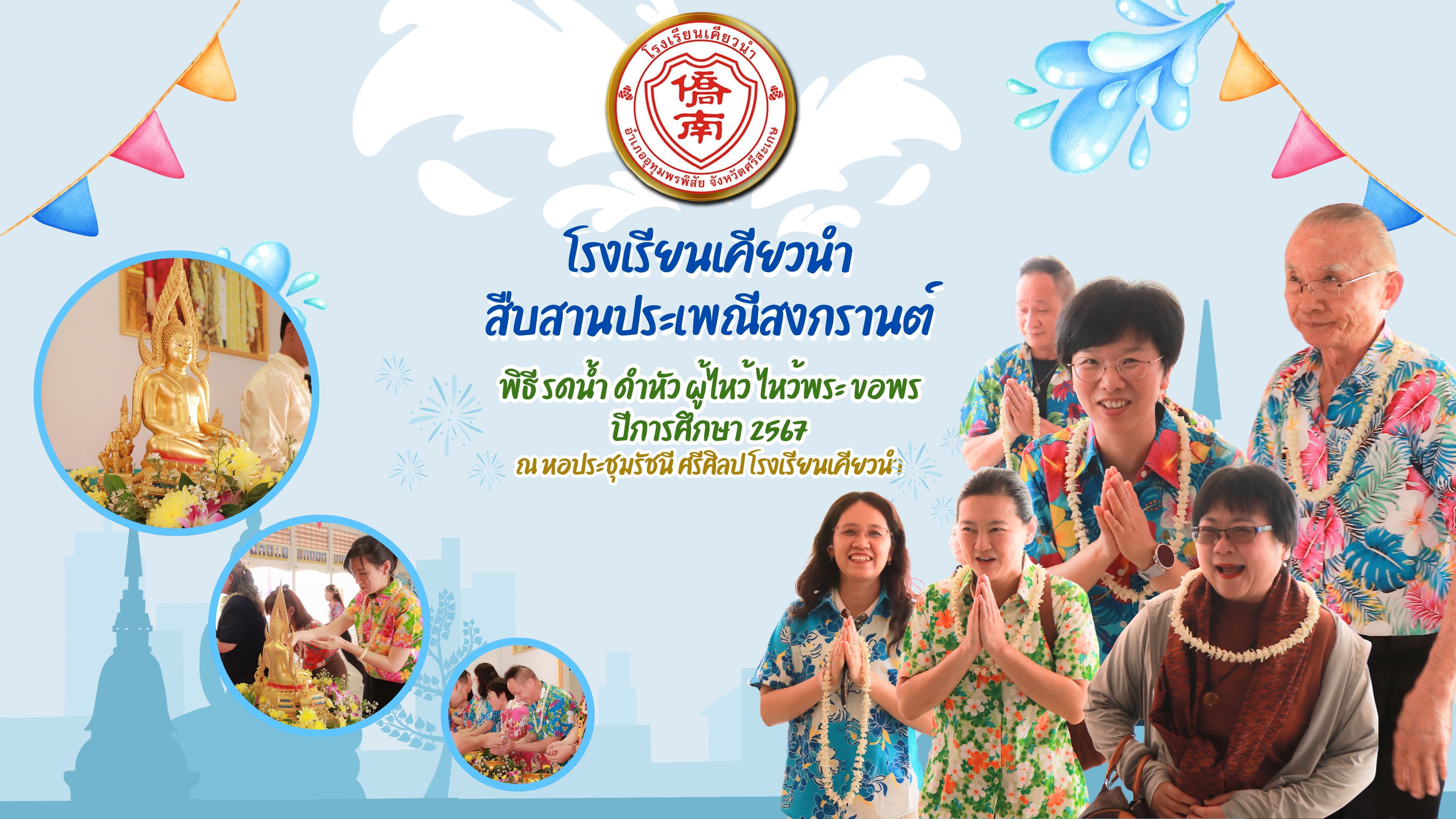 โรงเรียนเคียวนำ สืบสานประเพณีสงกรานต์ พิธี รดน้ำ ดำหัว ผู้ไหว้ ไหว้พระ ขอพร ปีการศึกษา 2567