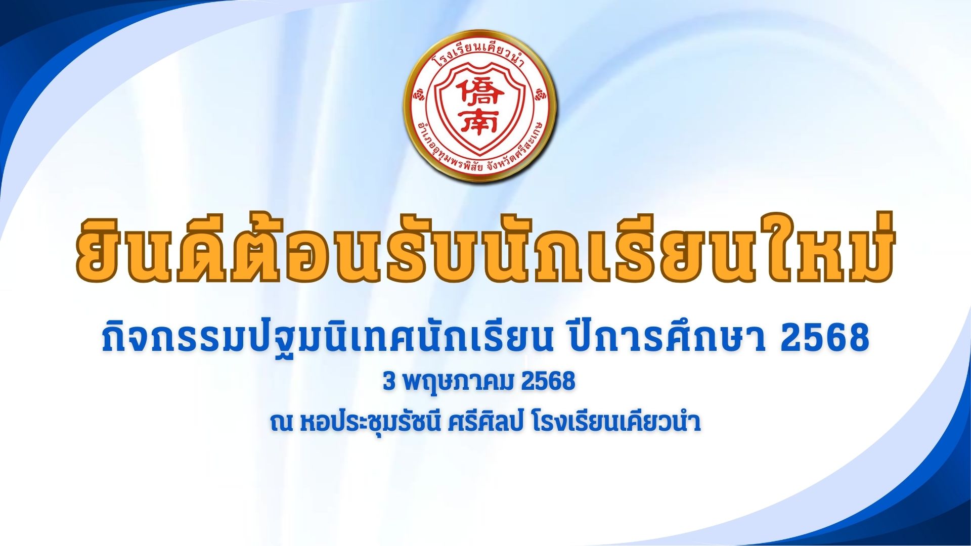 3 พฤษภาคม 2568 กิจกรรมปฐมนิเทศนักเรียนใหม่และประชุมผู้ปกครอง ปีการศึกษา 2568